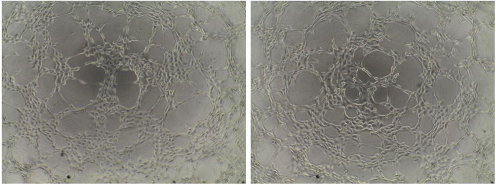 基质胶提供类似基底膜的微环境,可诱导内皮细胞黏附、伸展并连接成网状结构;