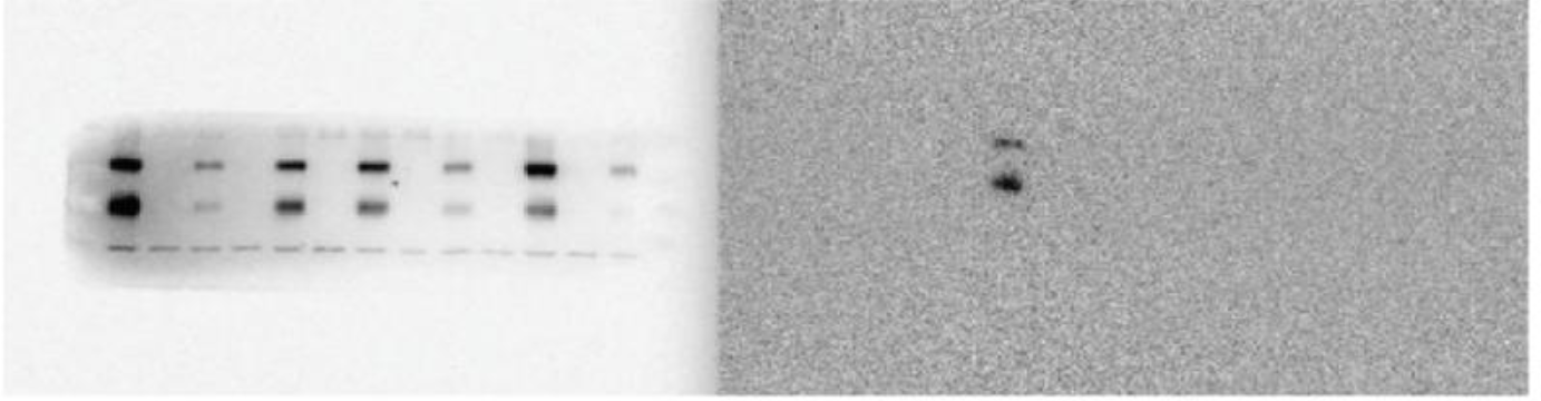 1. 显影信号强度比较: 相同蛋白量,相同曝光时长,观察各品牌显影效果,信号强者为优。实验检测曝光时长:0.3s,0.5s,1s,3s,5s,10s,20s,30s,40s,50s,60s,70s,80s,90s,100s。